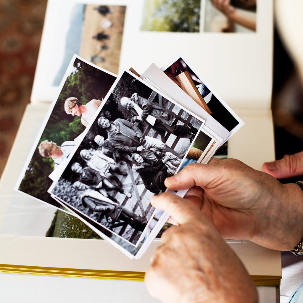 - Adult children helping organize their parents’ memories